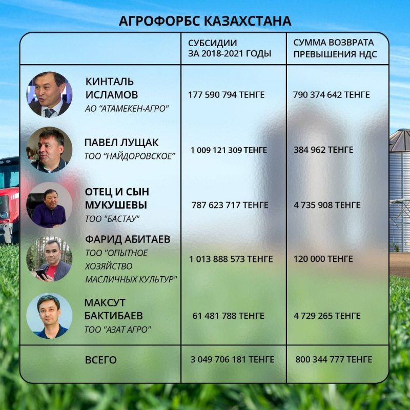 Казахстанцы в соцсетях сообщают, что в стране помимо всего прочего есть ещё и список «АГРОФОРБС».
