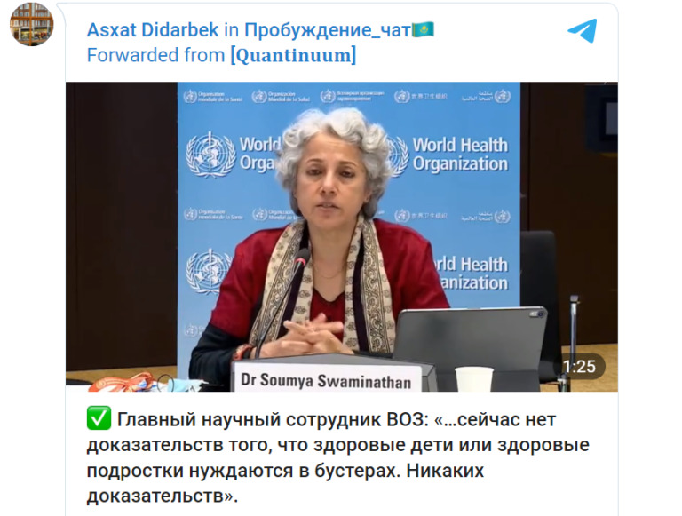 27 января 2022 года стало известно, что пользователи Казнета обсуждают высказывание главного ученого Всемирной организации здравоохранения Сумьи Сваминатан. На пресс-брифинге 18 января 2022 года она сообщила о том, что в настоящее время нет доказательств того, что здоровые дети и подростки нуждаются в бустерных дозах вакцины против COVID-19. Объяснение, что это значит.