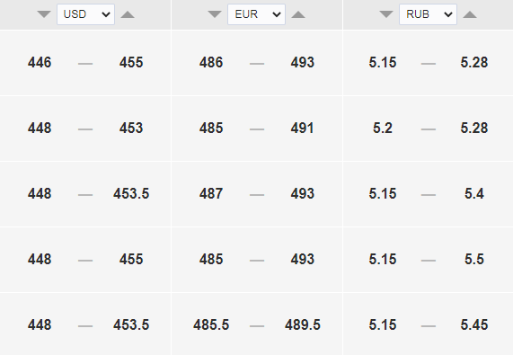 Курс доллара, евро и рубля к тенге в обменниках