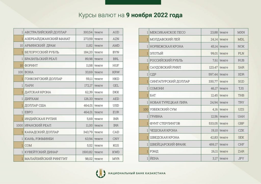 - Национальный банк установил официальные курсы доллара и рубля на 10 ноября