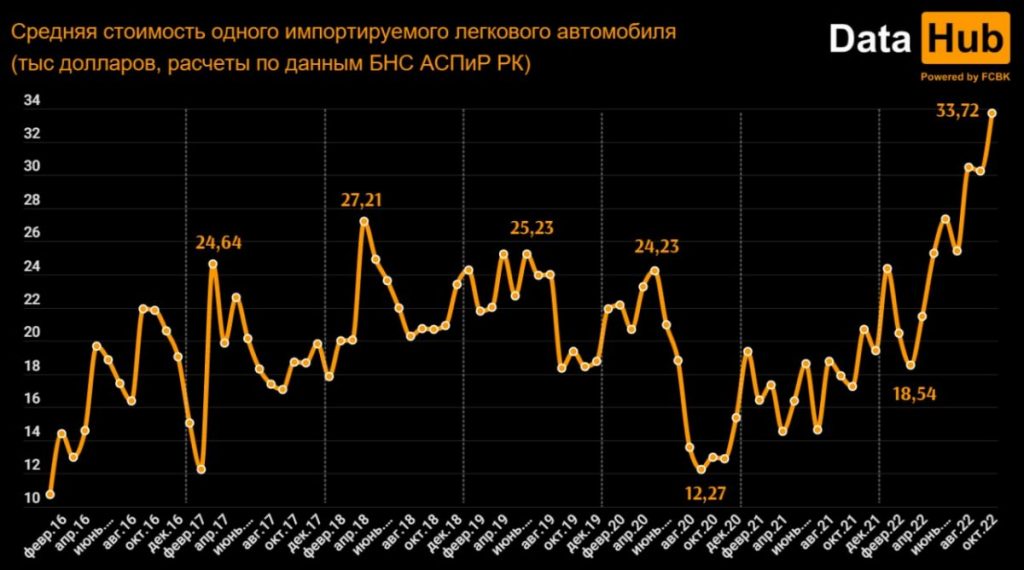 Cредняя стоимость единицы продукции составила 33,7 тыс. долларов, и это тоже рекорд. Это почти вдвое больше, чем в октябре 2021 года, когда она составляла всего 17,25 тыс. долларов — значительно меньше, чем сейчас. Тем не менее, следует знать, что в эти цифры не входит серый импорт, который, по оценкам Нацбанка, за первое полугодие 2022 года составил более половины от официального.