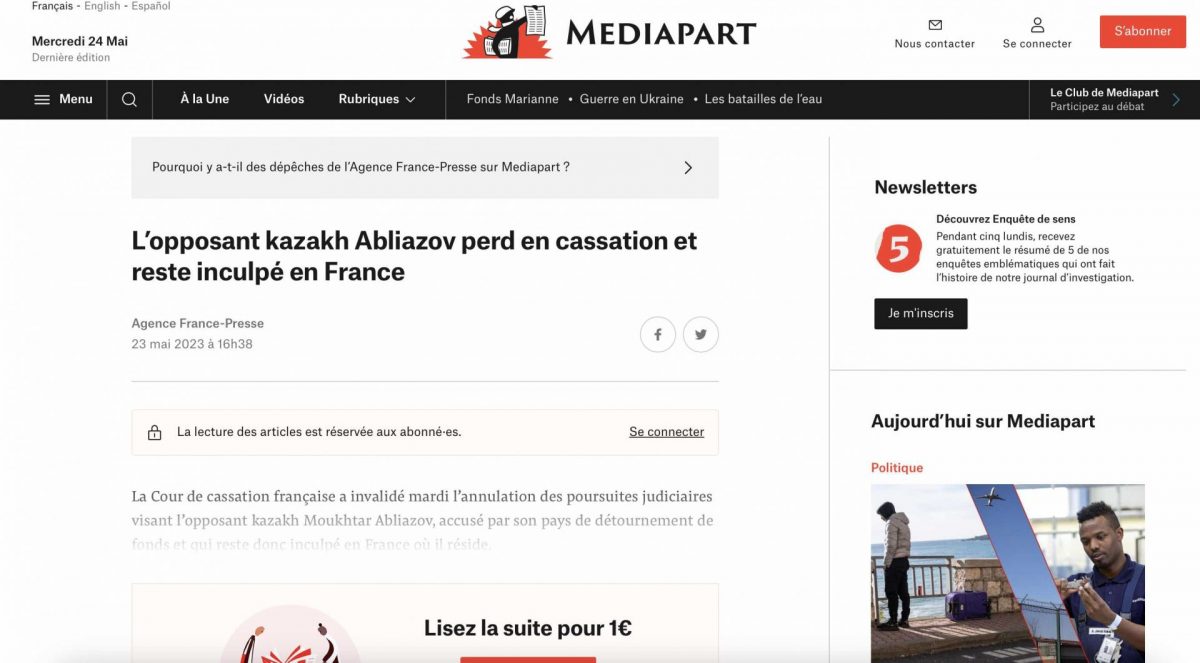 В том же году судебные органы Казахстана передали данные в Министерство юстиции Франции по делу, связанному с Аблязовым. Однако, экс-банкиру было отказано в экстрадиции во Францию, поэтому судебными органами потребовалось провести разбирательство на месте.