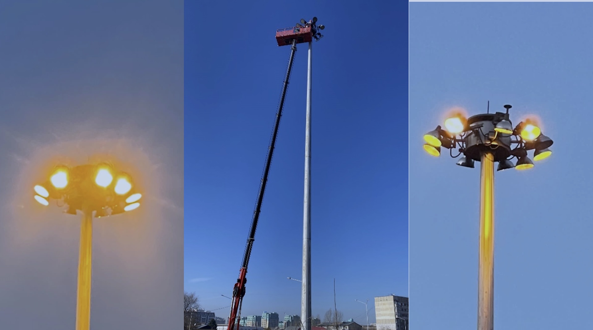 Профессионалы Государственного коммунального предприятия «Алматы Кала жарык» продолжают работу по обновлению осветительных систем на транспортных развязках города. На пересечении проспекта аль-Фараби и улицы Жарокова они успешно выполнели реставрацию 9 мачт, высота которых достигает 40 метров.