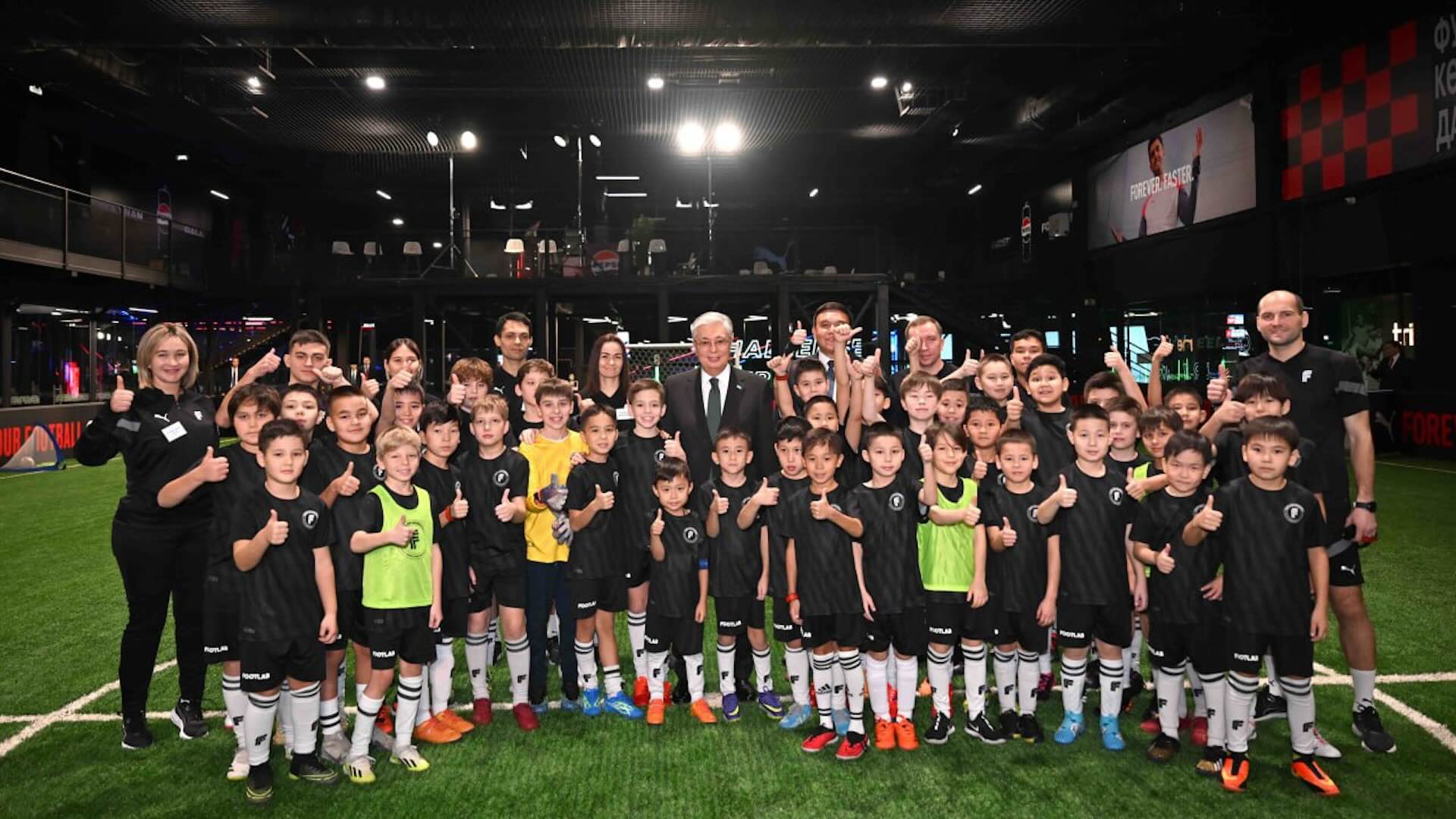 Касым-Жомарт Токаев поблагодарил молодых футболистов и оставил свой автограф на футболке в качестве памятного сувенира.