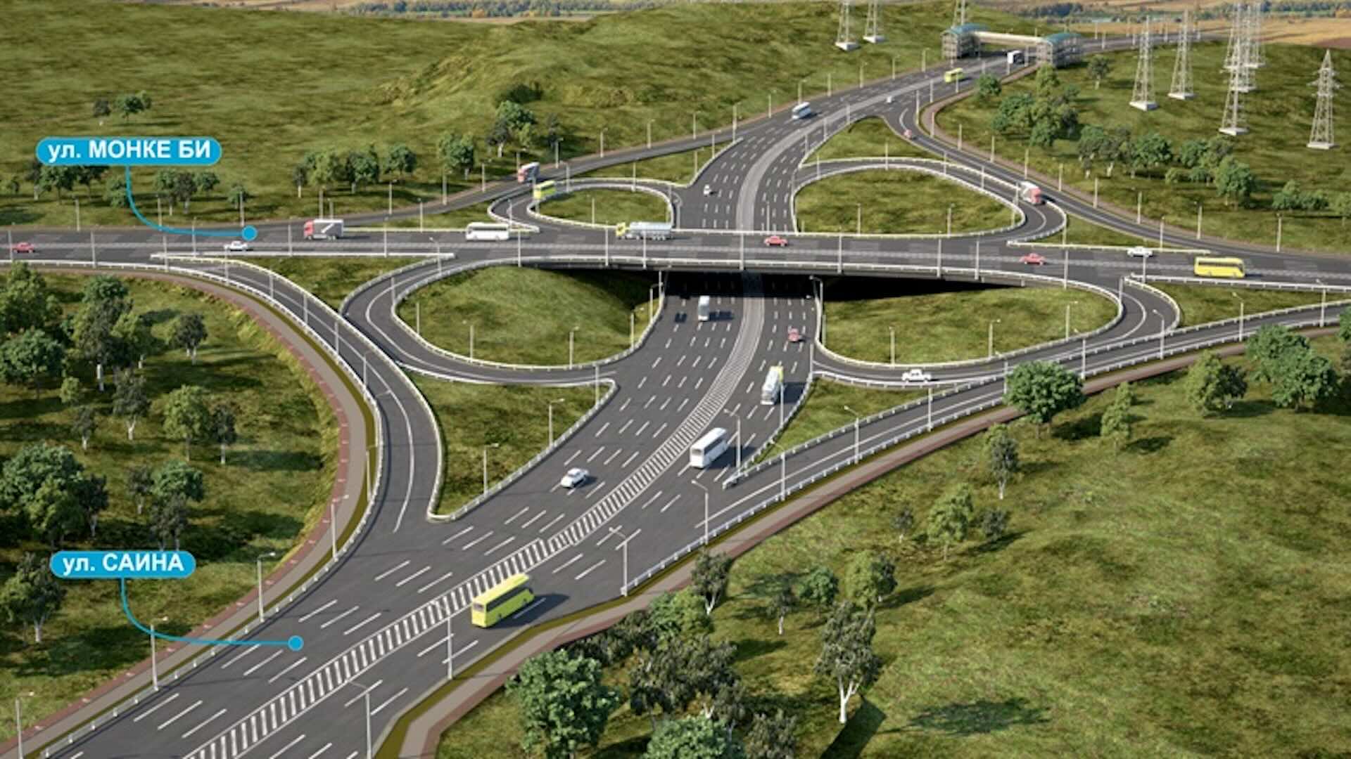 Также в третьем квартале текущего года планируется ввод в эксплуатацию развязки на перекрестке ул. Саина и ул. Монке би, выполненной в форме «клеверного листа», что обеспечит движение без остановок во всех направлениях. Устройство велосипедных дорожек и тротуаров протяженностью в 2,3 км призвано способствовать безопасности и комфорту пешеходов и велосипедистов.