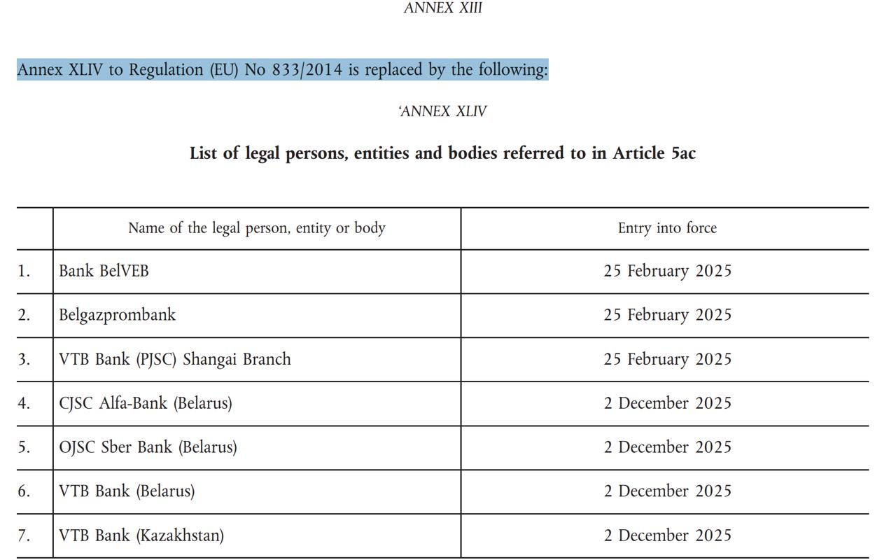 Банк ВТБ Казахстан оказался в санкционных списках Европейского союза, опубликованных в рамках нового, уже 19 по счету, пакета санкций против Российской Федерации, сообщает Bizmedia.kz.