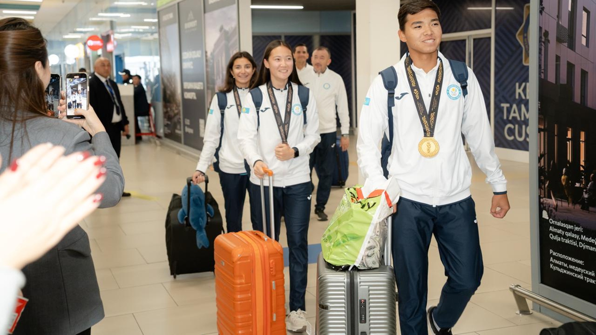 Сегодня в аэропорту Алматы торжественно встретили сборную Казахстана по пляжному волейболу, вернувшуюся с юношеских Азиатских игр, проходивших в Бахрейне. Болельщики, тренеры и представители спортивных федераций встретили чемпионов с цветами, флагами и аплодисментами.