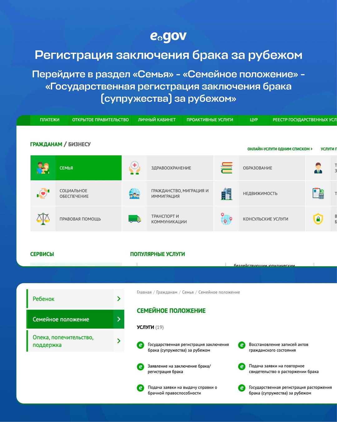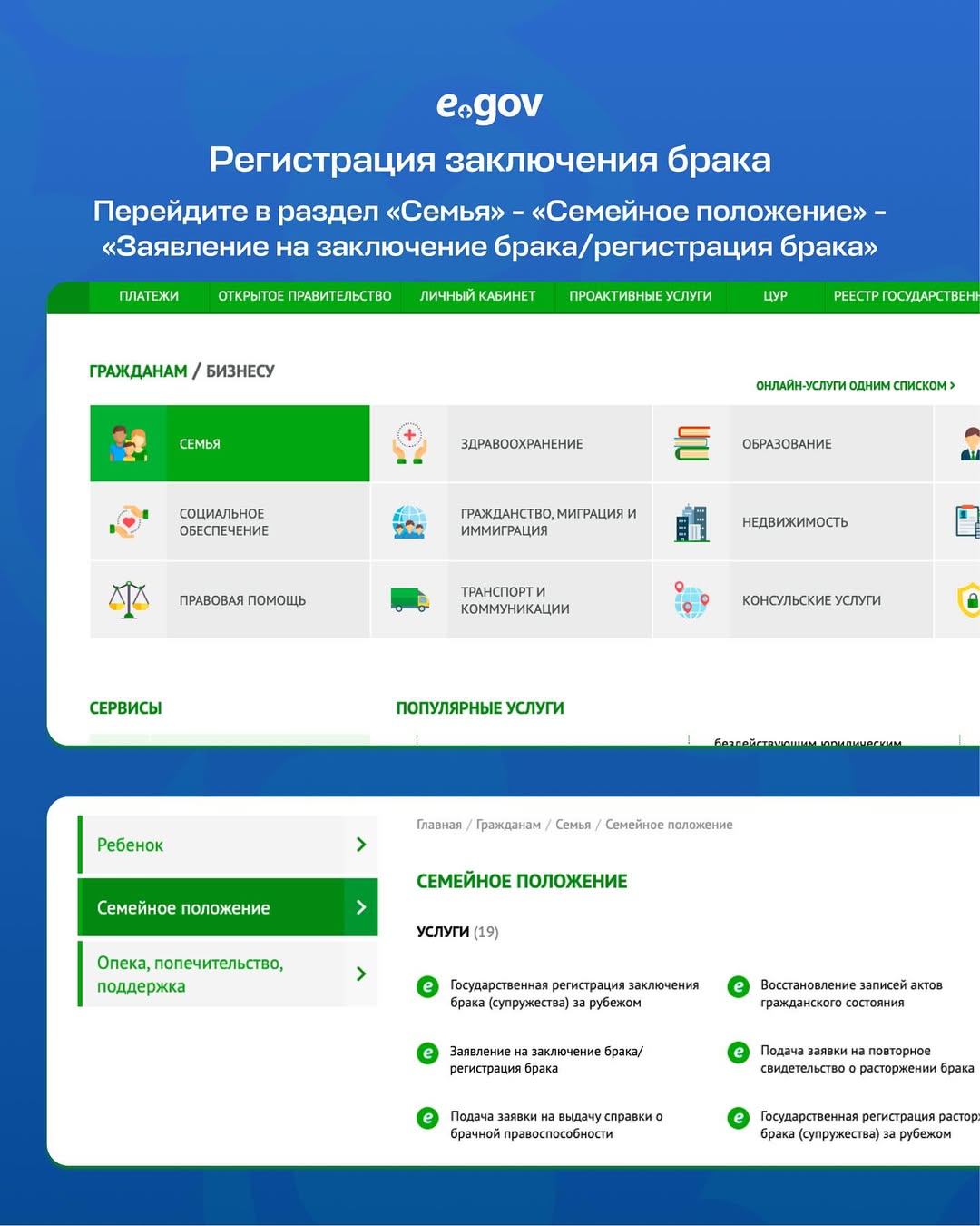 Услуги, связанные с подачей заявки на регистрацию брака теперь доступны и в онлайн-формате, найти их можно на портале eGov.kz.