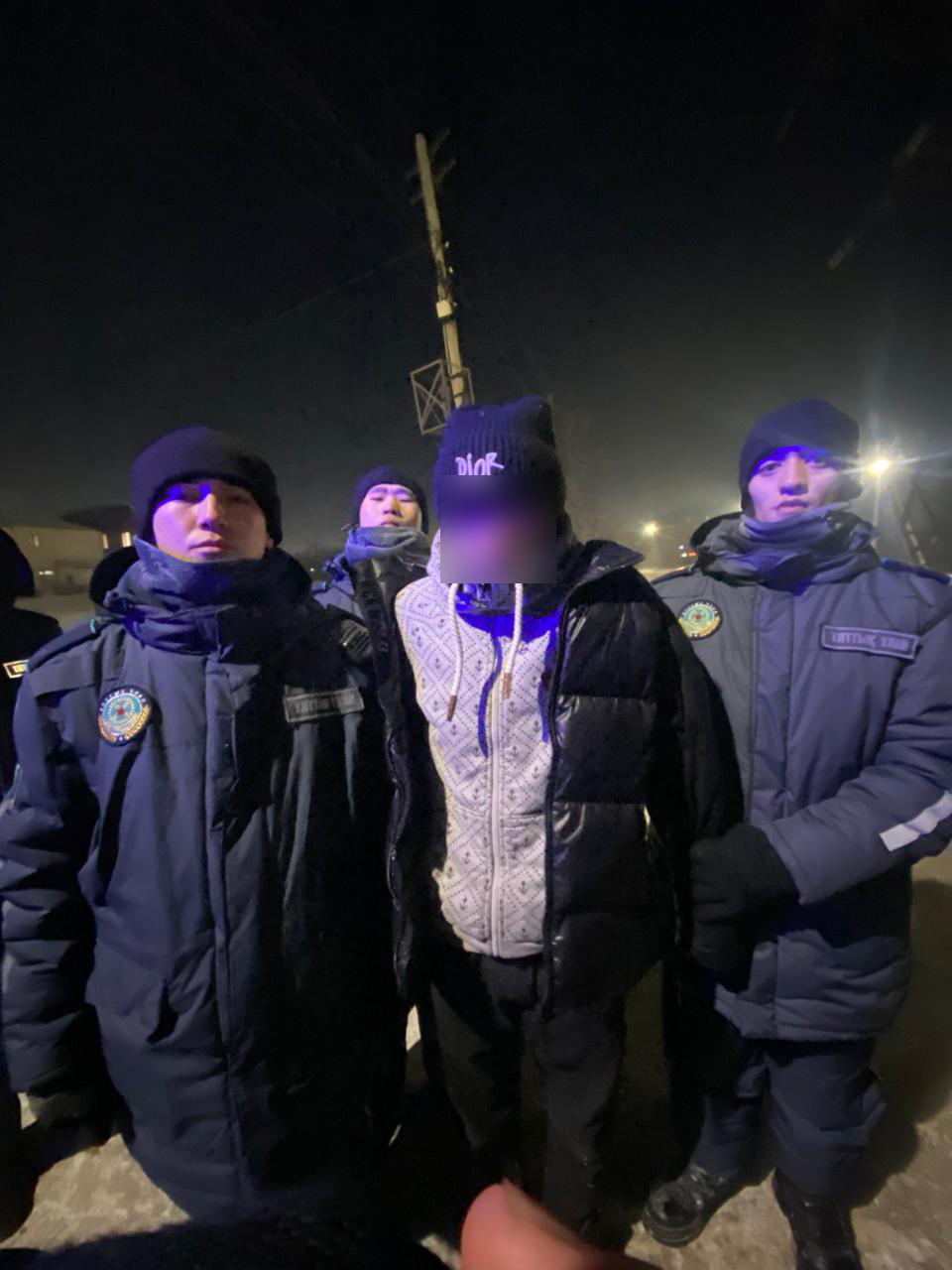 Во время патрулирования улиц города начальник войскового наряда рядовой Даурен Омирбек совместно с патрульными рядовыми Дауыром Ашимбек и Досымжаном Дәулетхан обратил внимание на подозрительное поведение неизвестных лиц. Из автомобиля вышли двое граждан. Оглядываясь по сторонам, они попытались скрыться, предварительно забрав из-под снега неизвестный предмет.