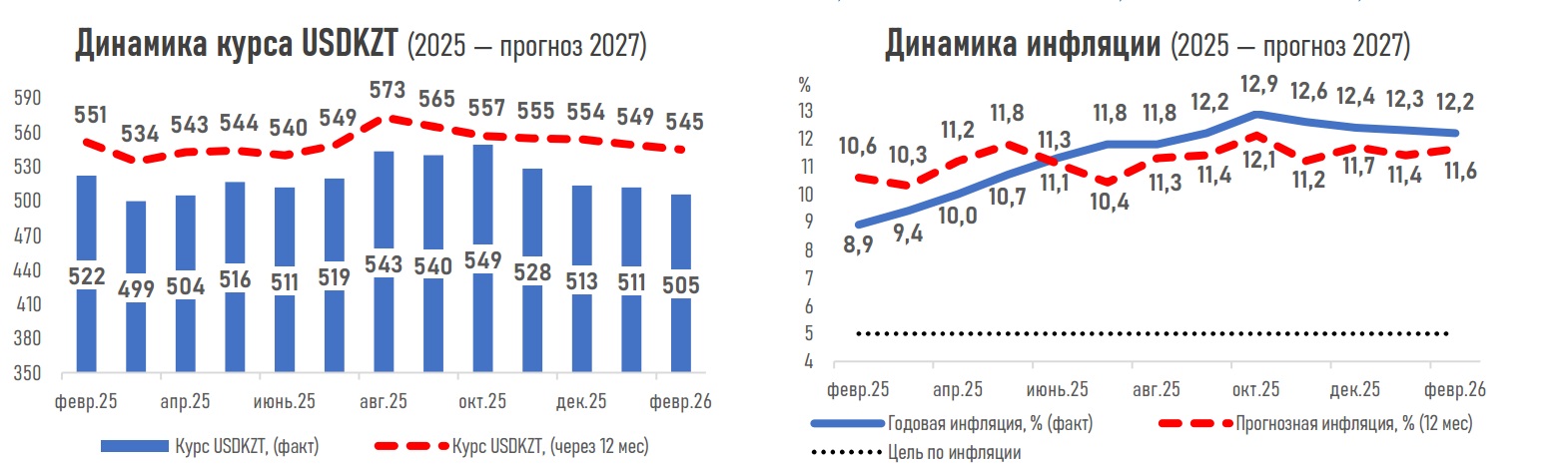 Ожидания по экономическому росту, наоборот, улучшились. Через 12 месяцев ВВП может прибавить около 5,0% (ранее — 4,7%). Поддержку дадут крупные инвестиционные и инфраструктурные проекты, расширение квазигосударственных инвестпрограмм и постепенная адаптация экономики к высоким ставкам.