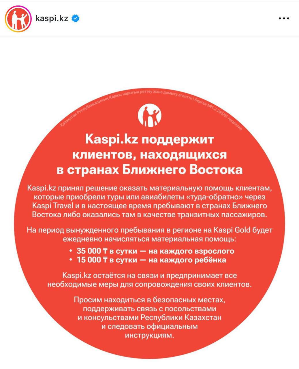 В Kaspi.kz подчёркивает, что остаётся на связи и предпринимает все необходимые меры для сопровождения клиентов. В то же время компания рекомендует находиться в безопасных местах, поддерживать контакт с посольствами и консульствами Казахстана и следовать официальным инструкциям.