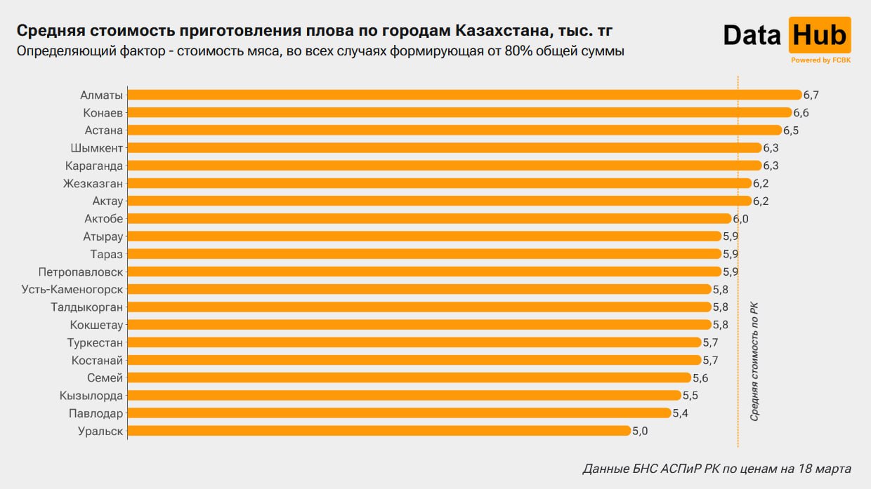 К празднику Наурыз аналитики подсчитали, в каких регионах Казахстана выгоднее готовить плов и сколько это стоит в среднем, сообщили в DATAHUB, передает Bizmedia.kz.