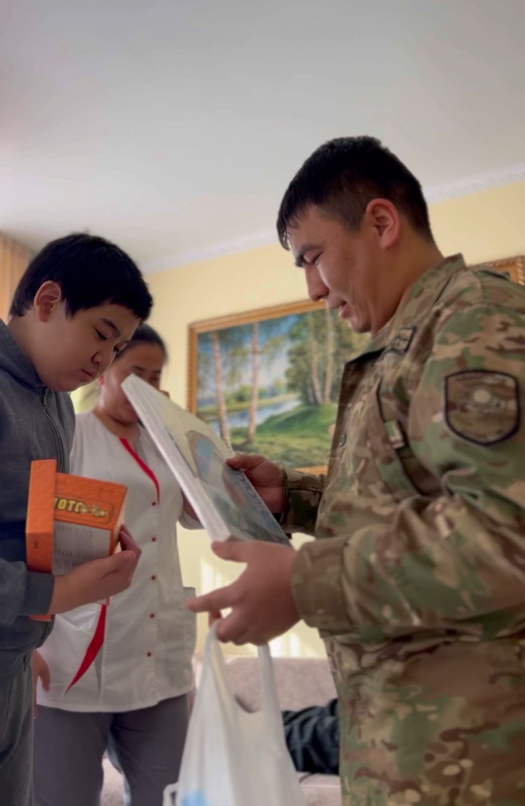 Военнослужащие воинской части 5451, расположенной в городе Караганда, специально посетили детский дом и подарили его воспитанникам хорошее настроение. Главной целью мероприятия стало проявление заботы о детях, дарение им тепла и внимания.